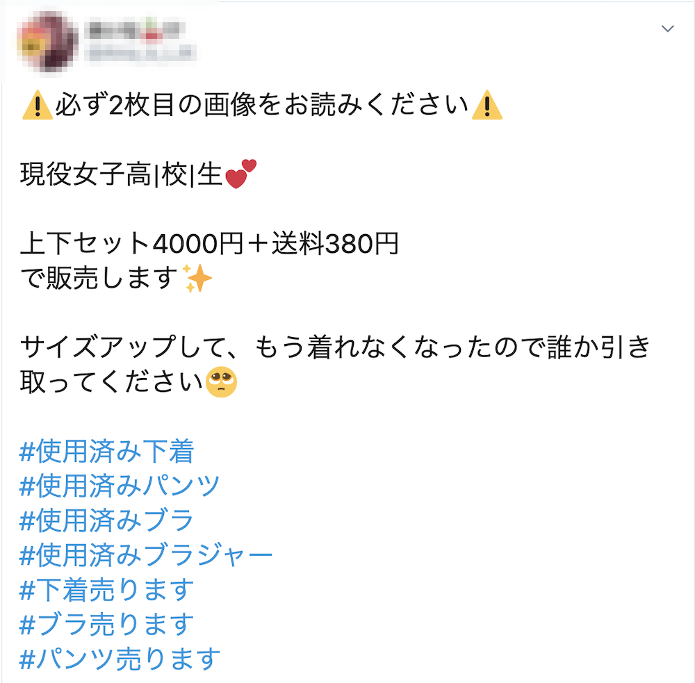 上記の画像では、女子高生を名乗っている女性が使用済み下着を売っている。